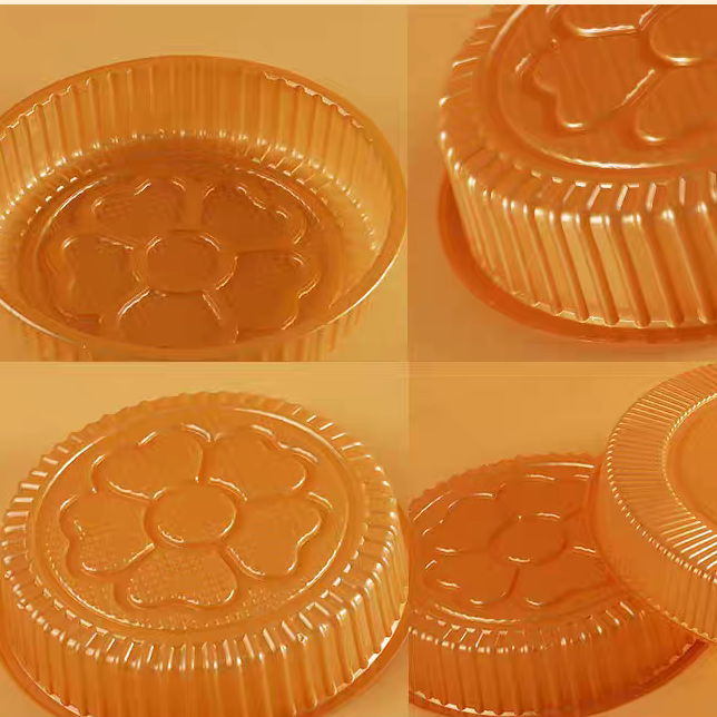 Customized disposable circular plastic PP 1.5kg gold mooncake tray packaging