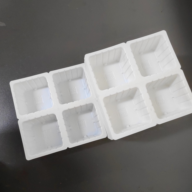 19.5gCustomized square white disposable PET 4 grid plastic thermoforming can heat seal pet cat snacks wet food container