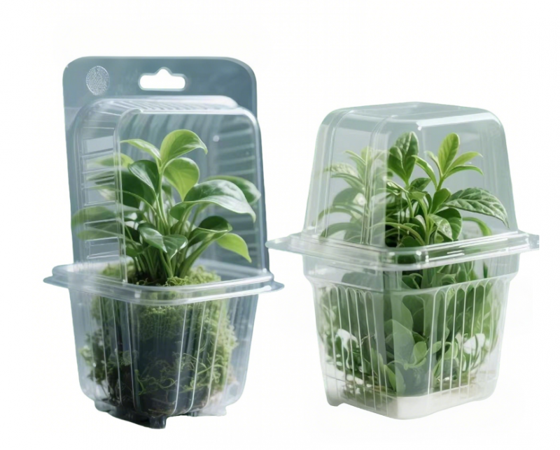 In the process of plant seedling cultivation, transportation, and retail, the pain points of traditional packaging, such as easy damage, poor breathability, and insufficient environmental protection, are becoming increasingly prominent. This vacuum packaging is designed specifically for living plants, using food grade biodegradable PET/PP material, innovative one-piece structure with top hanging holes and breathable design, balancing protection, display, and environmental protection. It is an ideal choice for seedling bases, horticultural brands, and supermarket green plant retail.