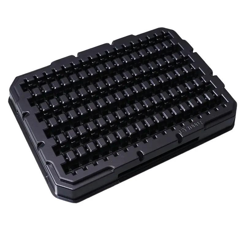 Permanent anti-static performance: Made of top-grade PS anti-static material, it fundamentally avoids damage to sensitive integrated circuits (ICs), chips, PCB boards, and other components caused by static electricity accumulation and discharge (ESD). Safety Barrier: Build a reliable anti-static safety barrier for your products during production, transportation, and storage. Customized plug-in design: Each cavity is precisely designed according to the shape of your component, providing a snug fit (tight wrapping) to effectively prevent the components from shaking, colliding, and scratching during transportation, ensuring that the pins and pads are intact and undamaged. Durable and sturdy: It has good mechanical strength, impact resistance, can withstand a certain stacking weight, and protects the contents from deformation.